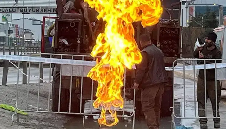 Kartepe ilçesi Dumlupınar Mahallesi Bedir Sokak ile Ulus Caddesi kesişimindeki arazide, 17 Şubat’ta metro projesi kapsamında yapılan sondaj çalışması sırasında 47 metre derinliğe inildiğinde çıkan yangın 14 gündür sürerken; yaklaşık 500 metre ilerisindeki Ankara Caddesi’nde metro projesi için yapılan sondaj çalışması sırasında yerin 45 metre derinliğinde gaz açığa çıktı.