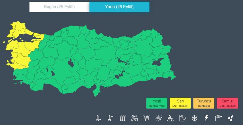Beklenen fırtına nedeniyle İstanbul ve İzmir başta olmak üzere, Balıkesir, Bursa, Çanakkale, Edirne, Kırklareli, Kocaeli, Manisa, Tekirdağ ve Yalova için sarı kodlu uyarı yapıldı.