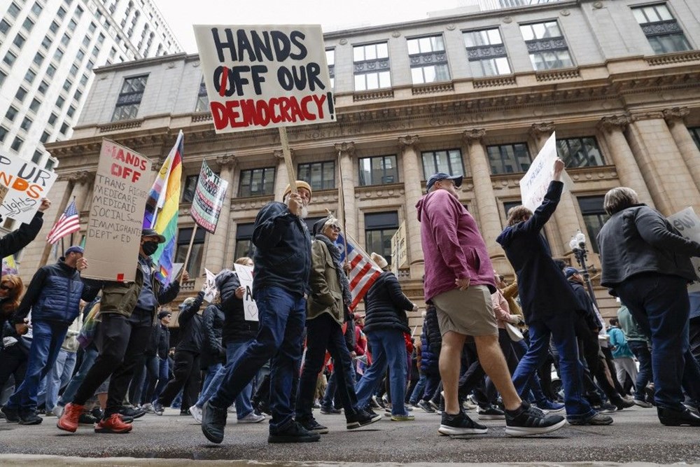 Eylemciler, Trump yönetiminin göçmenlik, kamu tasarrufu, demokratik haklar, medeni haklar ve işten çıkarmalar gibi konulardaki uygulamalarına itiraz etti.