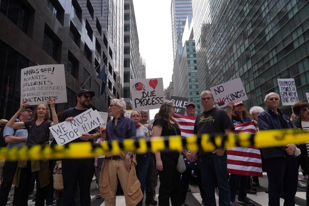 New York’ta Manhattan adası’daki gösteriye katılan binlerce protestocu, Trump hükümetinin göçmenlik uygulamalarından sosyal haklara kadar uzanan birçok alandaki politikalarına karşı tepkilerini dile getirdi.