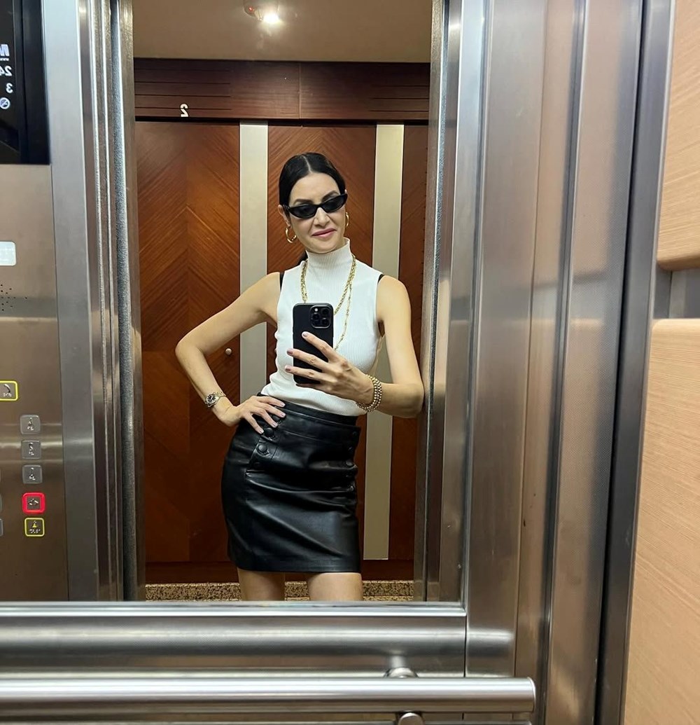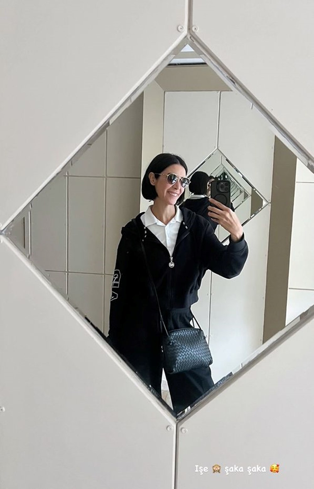 Aynada fotoğraf çeken ve gülümsediği görülen 47 yaşındaki Ahu Yağtu, “İşe… Şaka şaka” ifadelerini kullandı.