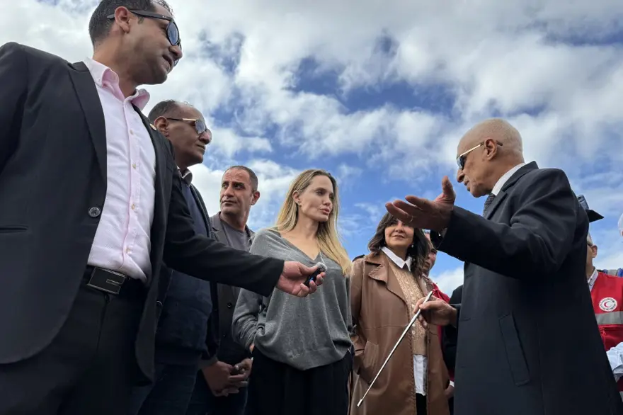 ABD’li ünlü oyuncu Angelina Jolie Mısır’la Gazze Şeridi arasındaki Refah Sınır Kapısı’nı ziyaret etti, Mısır Kızılayı yetkilileriyle görüştü.