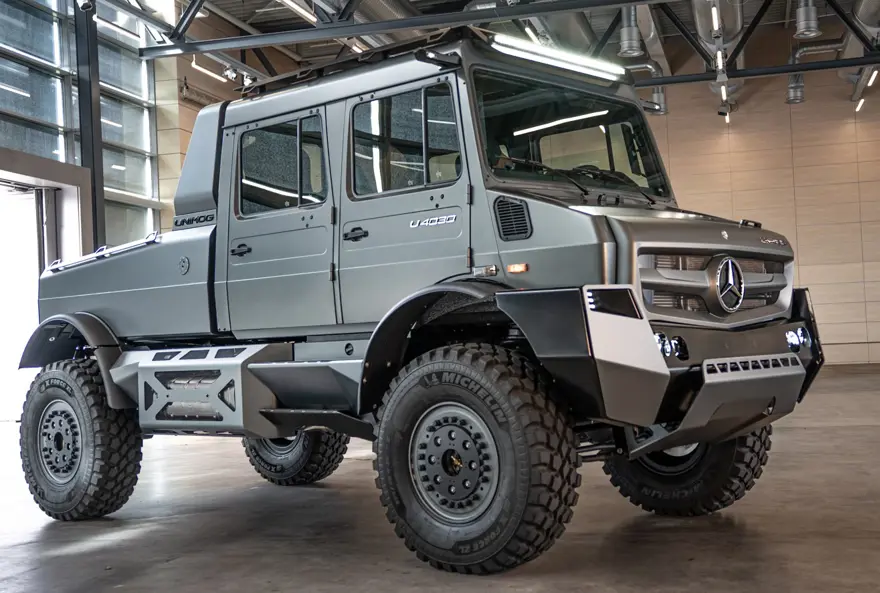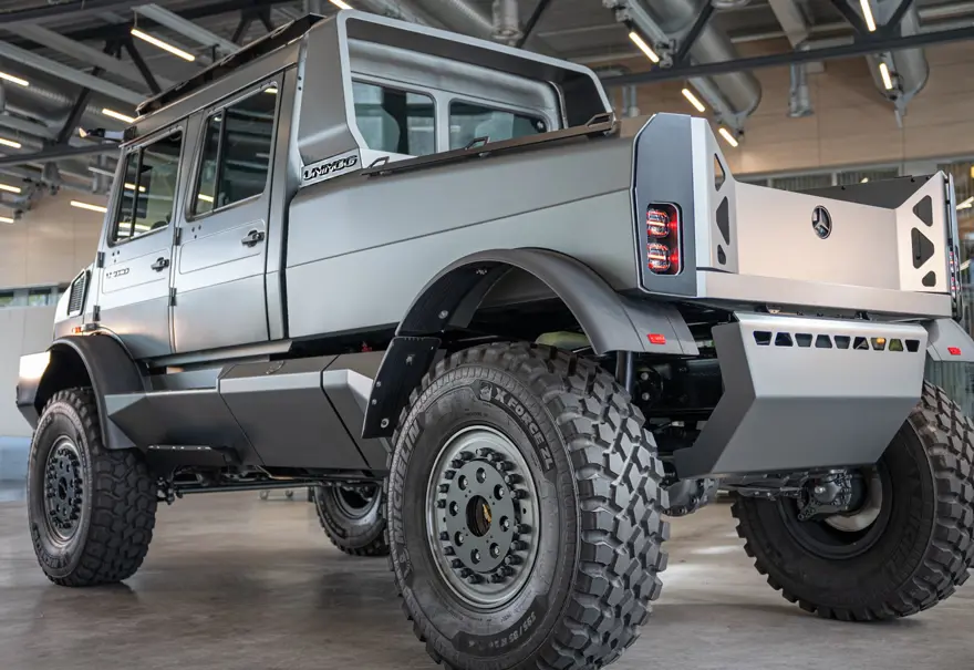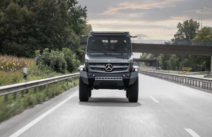 Lüks Unimog, portal akslara ve esnek şaseye sahip olacak. Arazi koşullarına son derece uygun olan Unimog U 4023 modelini örnek alan lüks Unimog, tercihe bağlı dört çeker sistemi, her iki aksta bulunan diferansiyel kilitleri zorlu arazi şartlarında çekiş ve kontrolü tam anlamıyla sağlayacak.