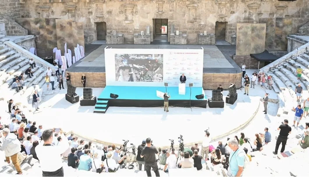 Kültür ve Turizm Bakanı Mehmet Nuri Ersoy’un öncülüğünde başlatılan “Geleceğe Miras” projesi, sadece restorasyon ve kazı çalışmalarıyla sınırlı kalmayan, aynı zamanda kültürel kimliğin yeniden yorumlanmasını amaçlayan kapsamlı bir girişimdir. Bakanlık tarafından kamuoyuna sunulan son gelişmelere göre, Aspendos’taki kazı alanı 580 m²’den 3.800 m²’ye çıkarılmış olup, 2025 yılı için hedef 13.500 m² olarak belirlenmiştir. Bu ölçek, Türkiye’de tek bir antik kent için yürütülen en büyük genişletme çalışmalarından biri olması açısından dikkat çekicidir.