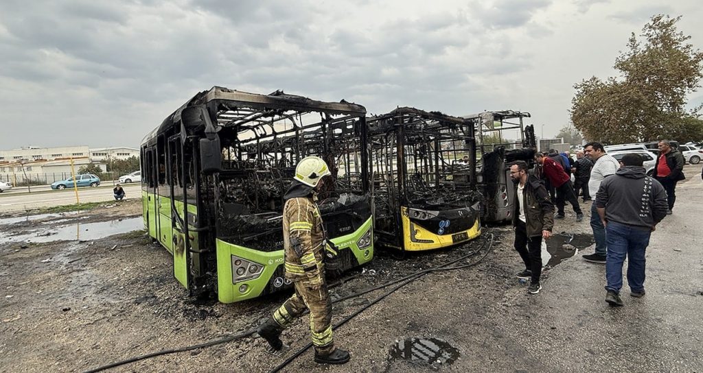 Yangının ardından 3 otobüs tamamen yandı.