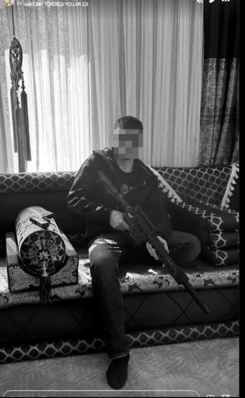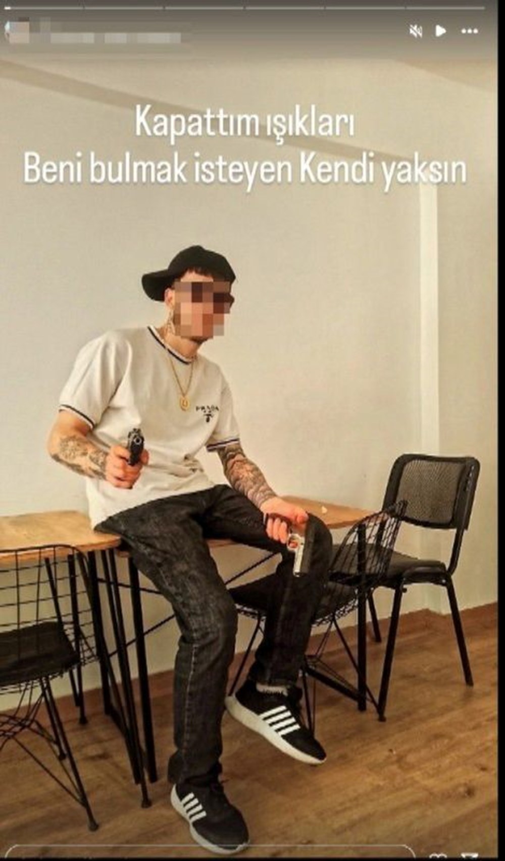 Şüphelinin elinde silahla çekilen fotoğraflarını paylaştığı ve bunlardan birinin üzerine “Kapattım ışıkları. Beni bulmak isteyen yaksın.” yazdığı görüldü.