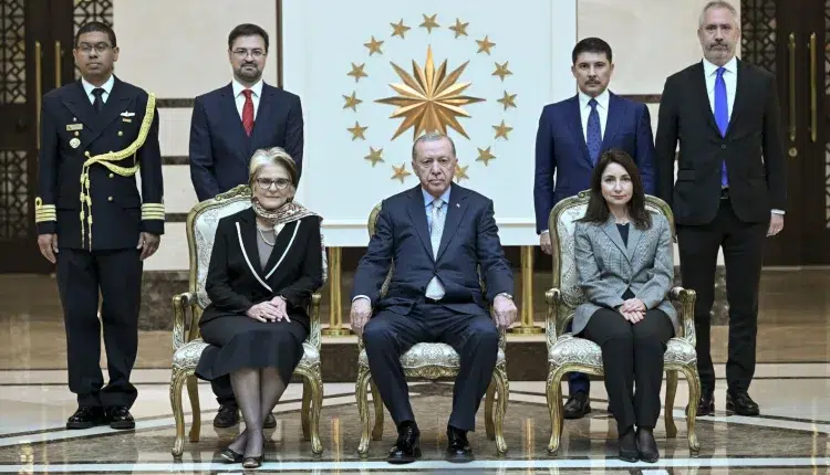 Beştepe’deki kabulde Belarus Büyükelçisi Anatoly Glaz, Brezilya Büyükelçisi Gilda Motta Santos Neves, Ekvador Büyükelçisi Pedro Vintimilla, Gürcistan Büyükelçisi Archil Kalandia ve Vietnam Büyükelçisi Dang Thi Thu Ha, Cumhurbaşkanı Erdoğan’a güven mektuplarını sundu.