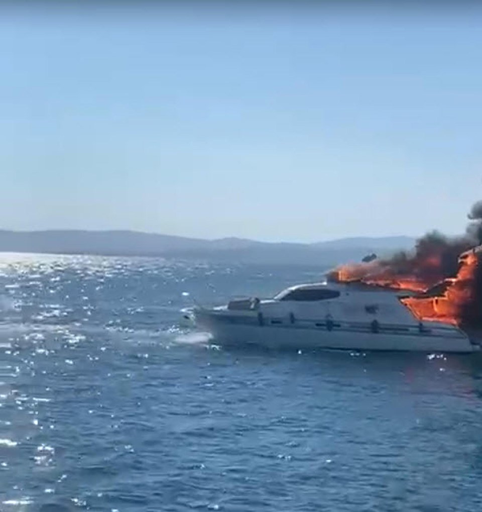 Kullanılamaz hale gelen motoryat, alevlere müdahale edildiği sırada kontrollü olarak batırıldı.