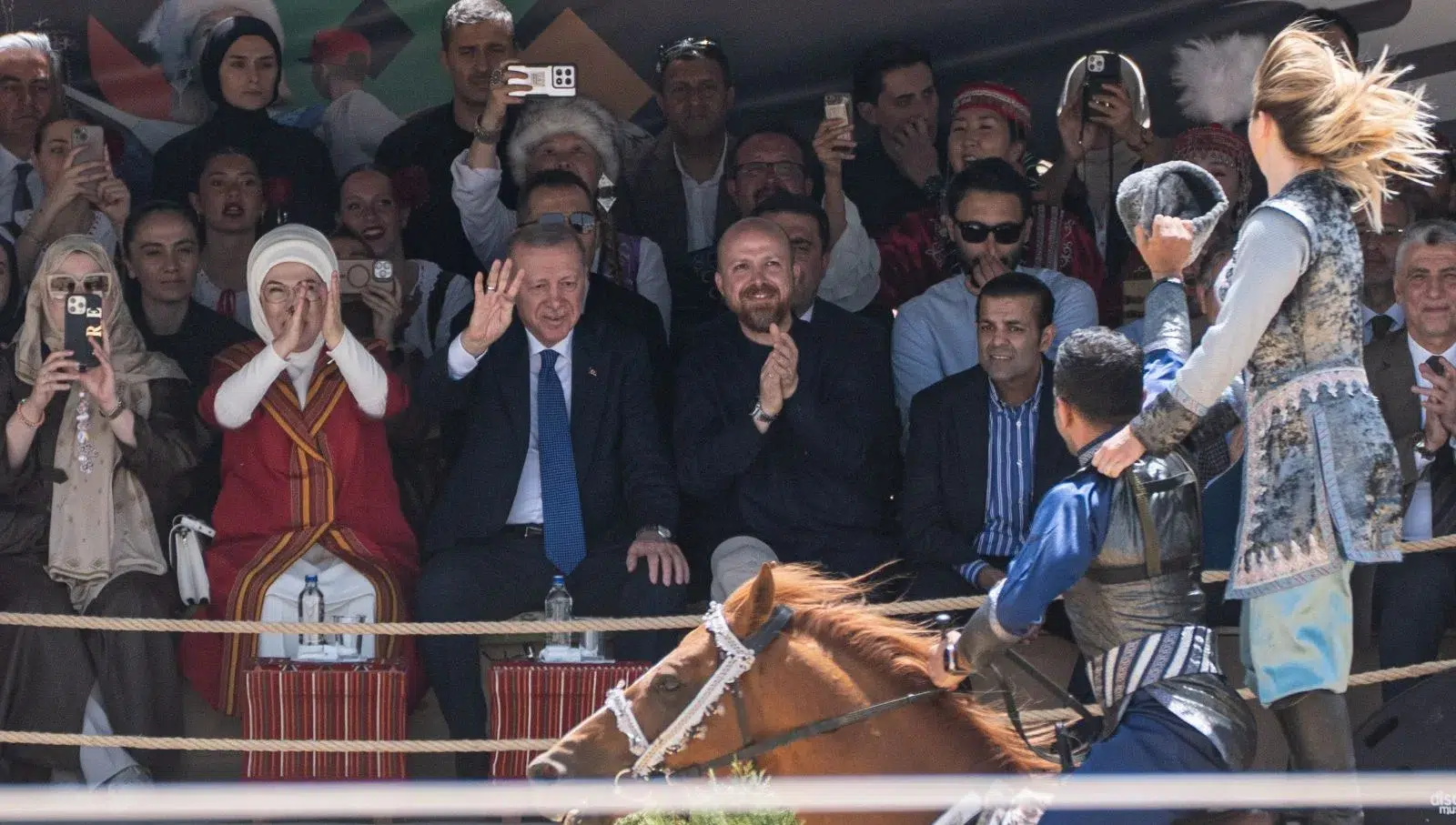 Festival alanında yöresel oyunları da izleyen Erdoğan, Karabağ’dan gelen ekibin akrobatik at gösterisi sırasında Türk ve Azerbaycan bayrağını açtığı anları ayakta alkışladı.