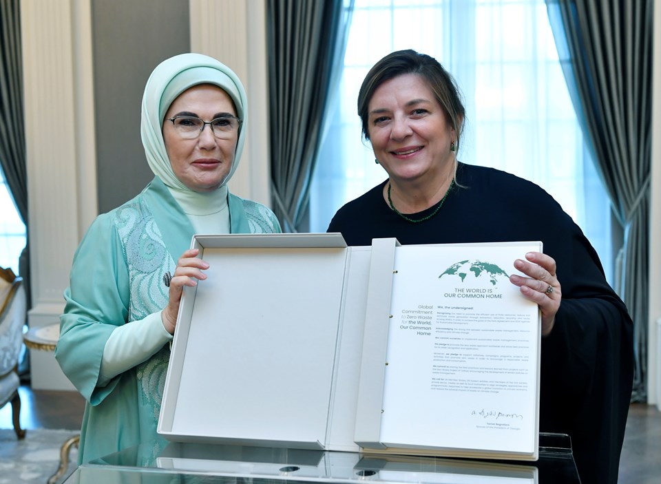 “Göreve başlamalarının ardından ilk resmi ziyaretlerini ülkemize gerçekleştiren Gürcistan Devlet Başkanı’nın kıymetli eşi Tamar Bagrationi Hanımefendi’yi ağırlamaktan memnuniyet duydum. Ülkelerimiz arasındaki güçlü bağlardan kültürel yakınlığımıza, çevreden eğitime kadar pek çok konuyu ele aldık. İşbirliği alanlarımız üzerine fikir alışverişinde bulunduk. Bu özel buluşma sebebiyle Sayın Bagrationi’nin, Küresel Sıfır Atık İyi Niyet Beyanı’nı imzalayarak çevreye ve insanlığa karşı ortak sorumluluğumuza sunduğu katkı son derece anlamlı. Gelecek nesillere daha temiz ve yaşanabilir bir dünya bırakma kararlılığımızı desteklediği için kendilerine yürekten teşekkür ediyorum.”