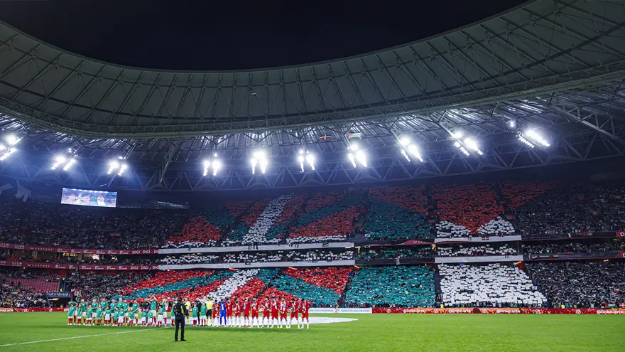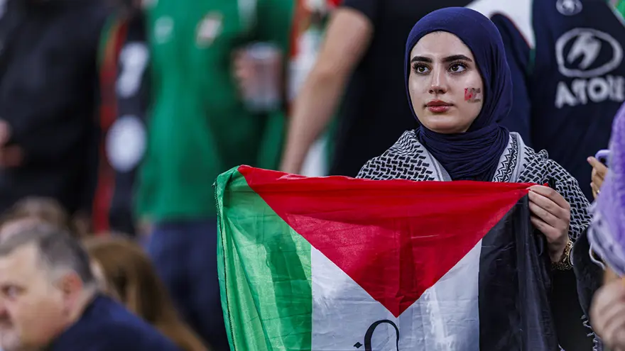 Filistin Milli Takımı’nın sahaya “Soykırımı durdurun” yazılı pankartı taşıyarak çıkması büyük alkış aldı.