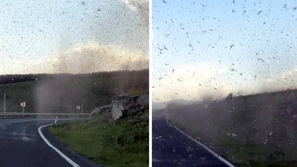 Çıldır Gölü’nü gezmek için bölgeye giden Fatih Balcı, bazı noktalarda hortumu andıran görüntü oluşturan sinek fırtınasını cep telefonuyla görüntüledi.