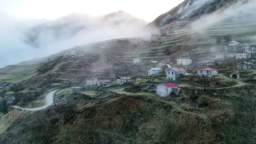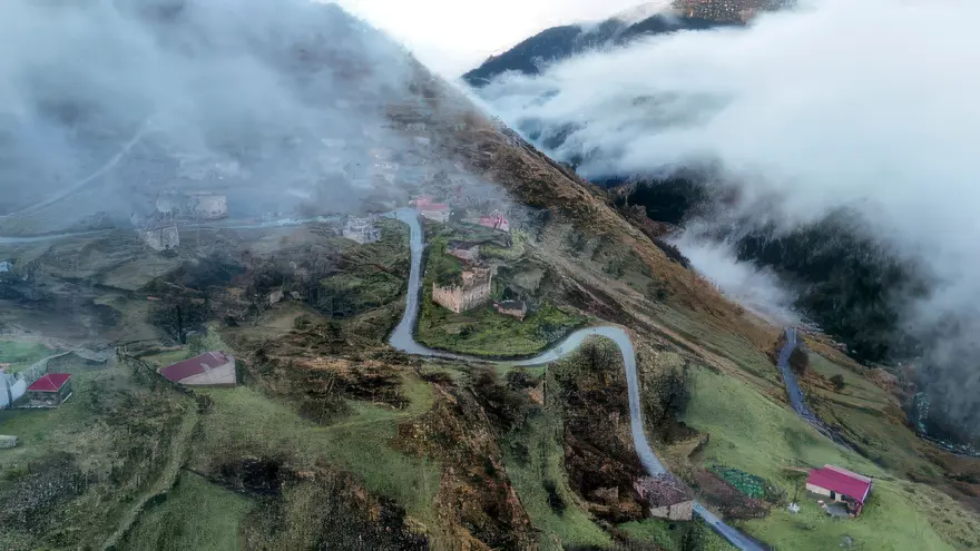 Geçmişi Orta Çağ’a kadar uzanan, “Gökyüzüne yakın saklı kent” olarak da bilinen Santa Harabeleri, sonbahara sis ve bulutları arasında renk cümbüşüyle veda ediyor.