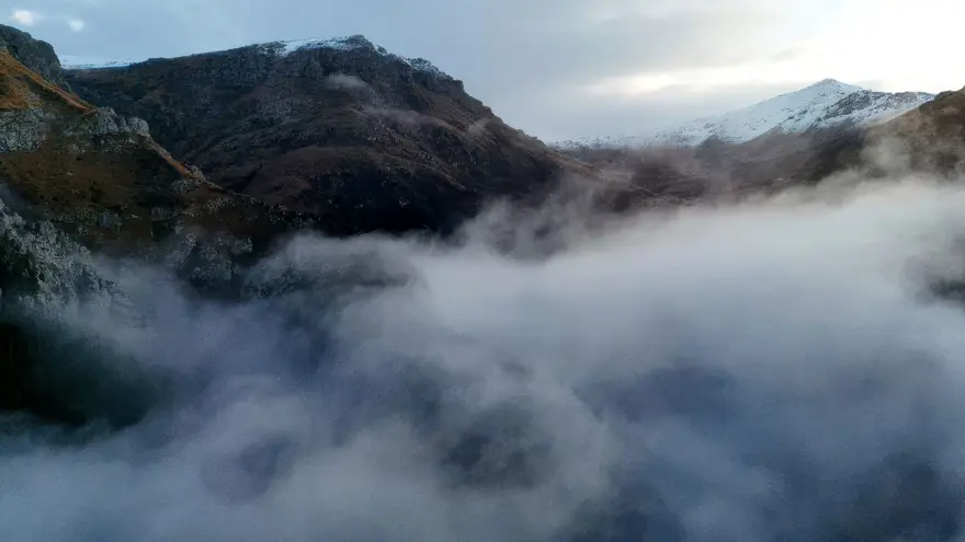 Tarihi taş yapıları, kiliseleri, çeşmelerinin yanı sıra mistik atmosferiyle Santa Harabeleri’nde ortaya çıkan doyumsuz manzara ilgi odağı oluyor. Santa zirvelerinde oluşan sis ve bulut denizi de böyle görüntülendi.