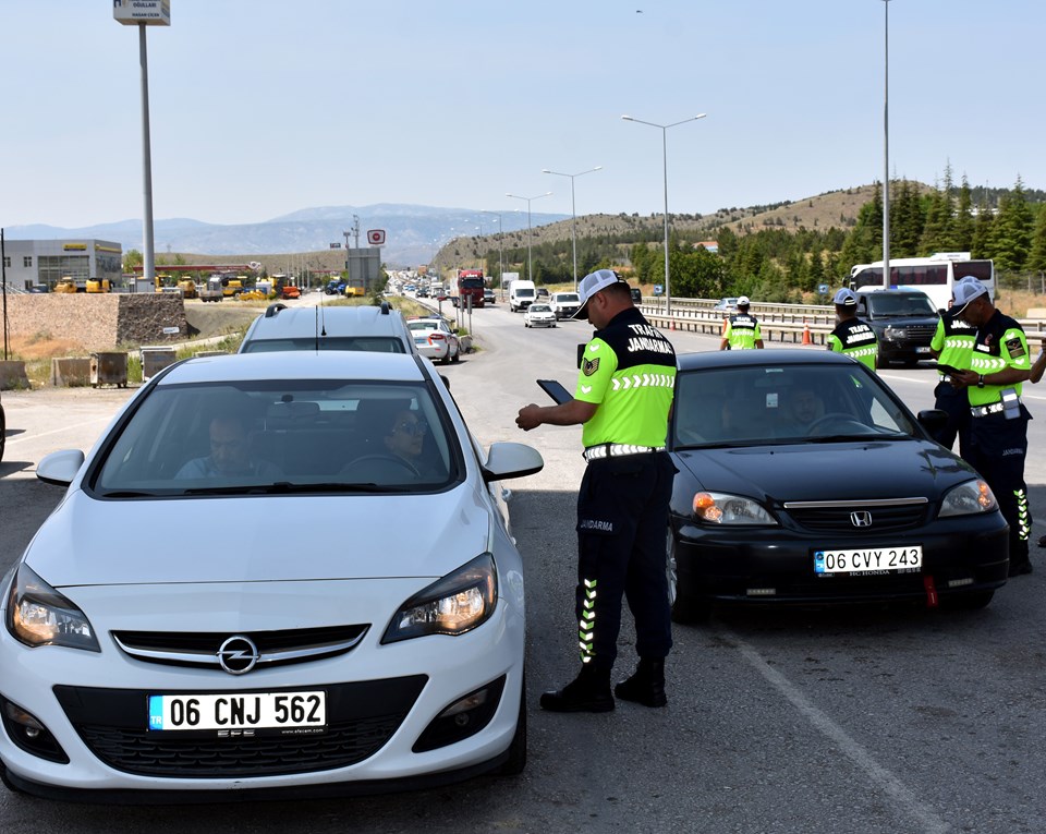 Bayram tedbirleri kapsamında jandarma ekipleri, 43 ilin kara yolunun bağlantı noktasında yer alan kentteki Kırıkkale-Ankara kara yolu hızlı tren köprüsü altındaki kontrol noktasında drone ile trafik denetimi gerçekleştirdi.
