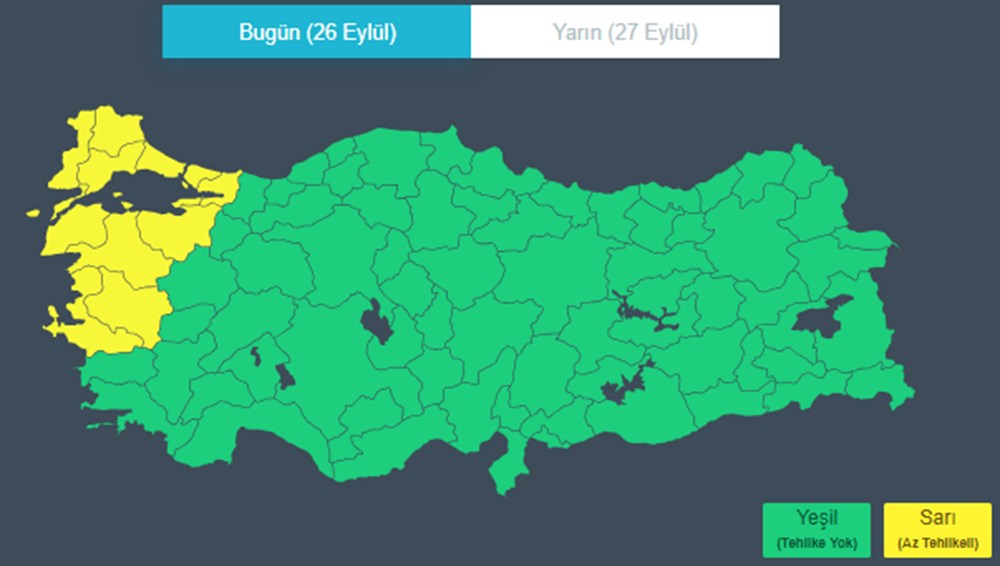 Bölgede rüzgarın zaman zaman 80 kilometre hıza ulaşması beklenirken, Balıkesir, Bursa, Çanakkale, Edirne, İstanbul, İzmir, Kırklareli, Kocaeli, Manisa, Tekirdağ ve Yalova için bugün sarı kodlu uyarı verildi.