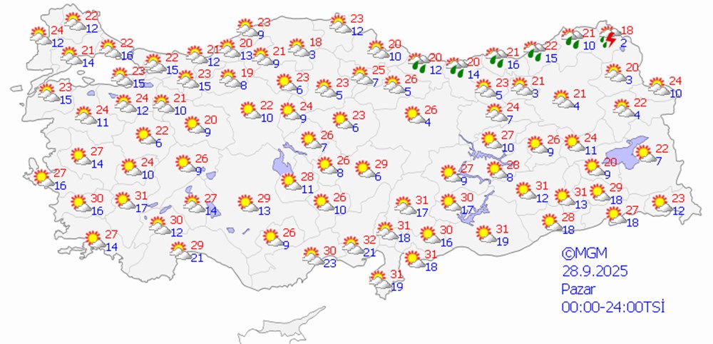 28 EYLÜL PAZAR HAVA NASIL OLACAK?