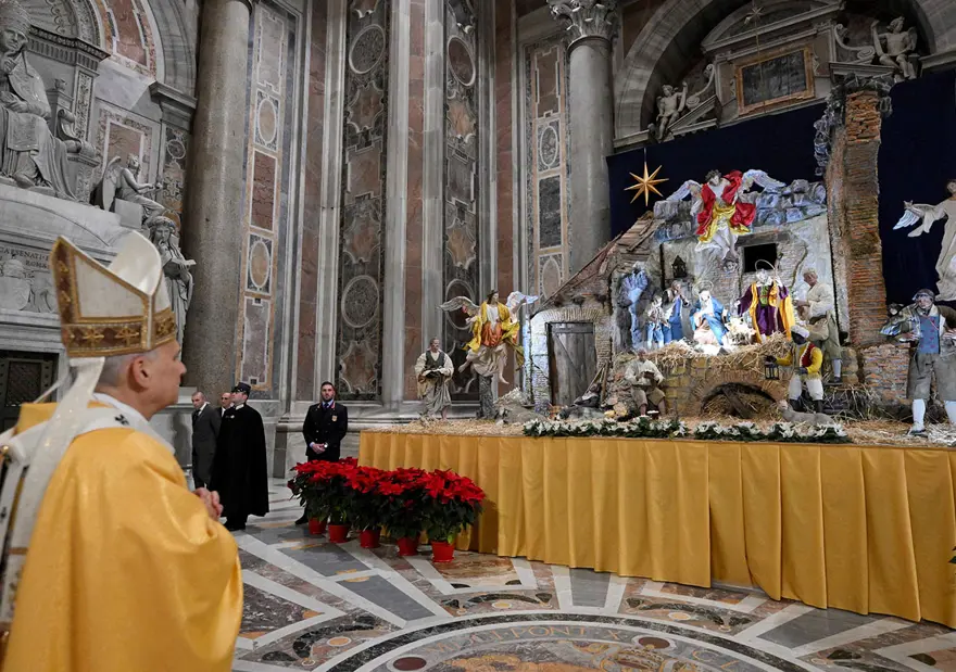 Vatikan’ın ünlü Aziz Petrus Bazilikası’ndaki Noel ayinine, Katolik Kilisesi’nden kardinaller, piskoposlar, rahipler ve Vatikan’a akredite kordiplomatik temsilciler ile davetliler katıldı.