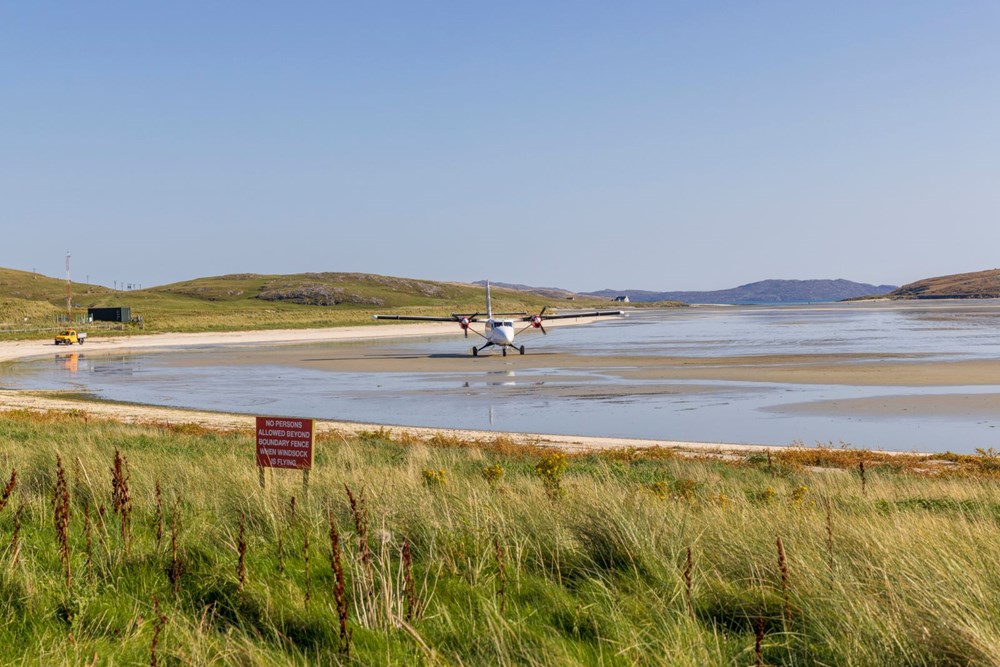 Küçük uçaklar, gelgitlere göre ayarlanan saatlerde doğrudan Traigh Mhor sahiline iniyor.