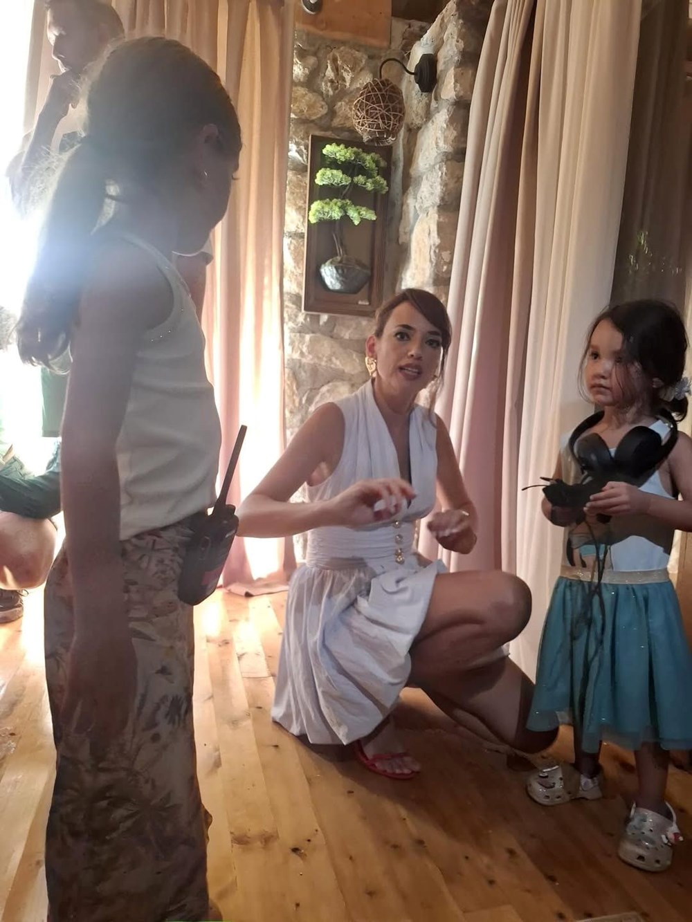 İki çocuk annesi ünlü oyuncunun kızlarını yanından ayırmaması ise dikkatlerden kaçmadı.