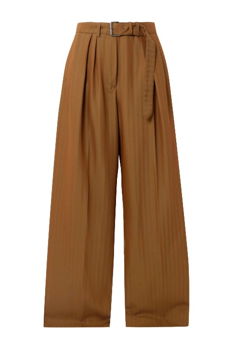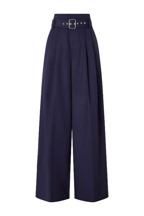 Belted Pleated Wool-Twill Wide-Leg Pants