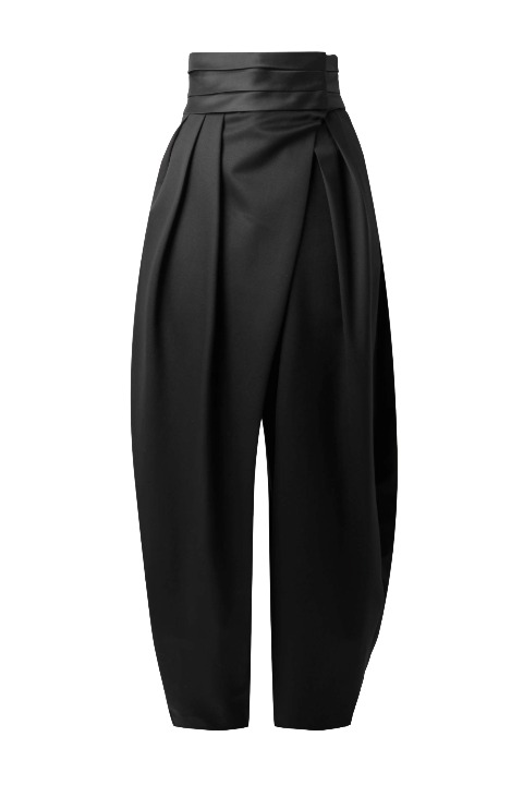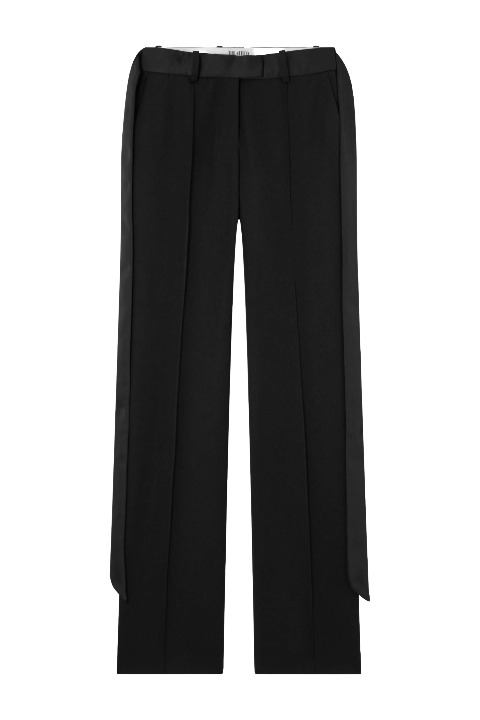 Silk-Trimmed Grain De Poudre Wool-Blend Barrel-Leg Pants
