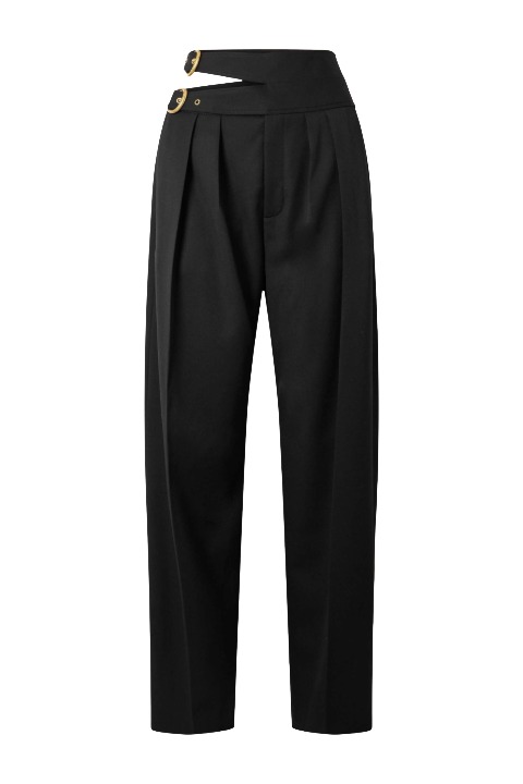 Buckled Cutout Grain De Poudre Wool Tapered Pants