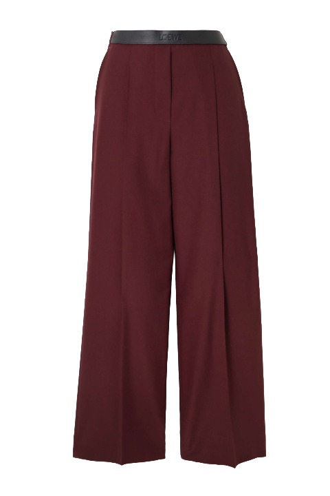 Leather-Trimmed Pleated Wool Grain De Poudre Pants