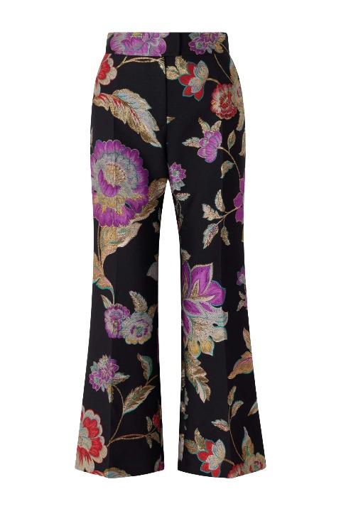 Floral-Brocade Wool-Blend Straight-Leg Pants