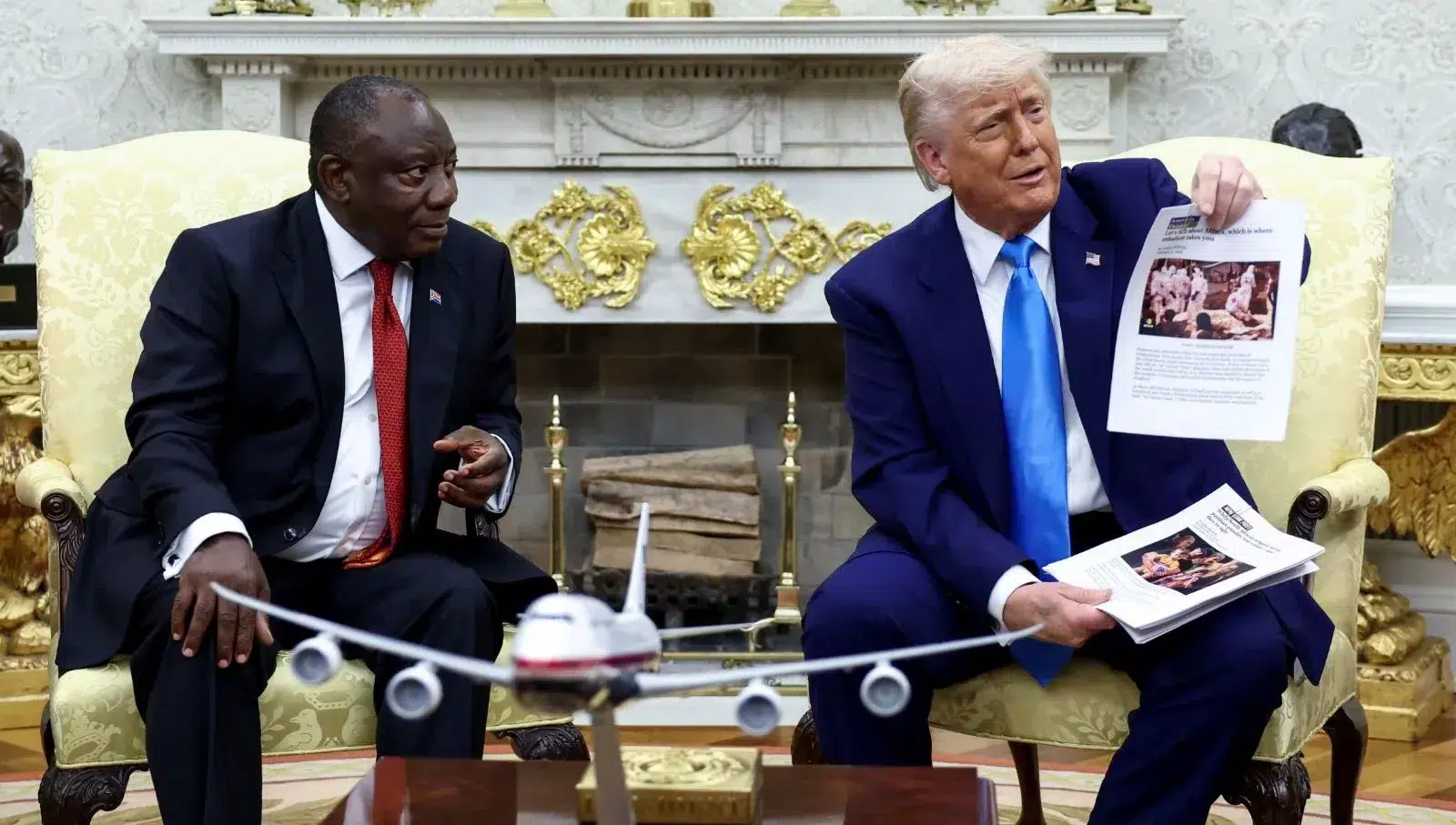 Güney Afrika Cumhuriyeti Devlet Başkanı Cyril Ramaphosa, ABD ziyaretinde beyazlara yönelik kitlesel cinayetler ve topraklarına el konulması yönündeki iddialarla karşı karşıya kalmıştı. Bu sahne, Ramaphosa’nın şubat ayında Ukrayna Devlet Başkanı Volodimir Zelenski’ye yönelik beklenmedik çıkışını anımsatmıştı.