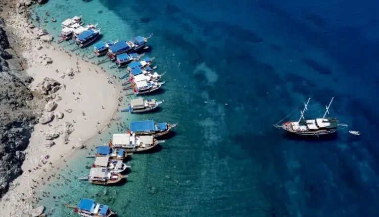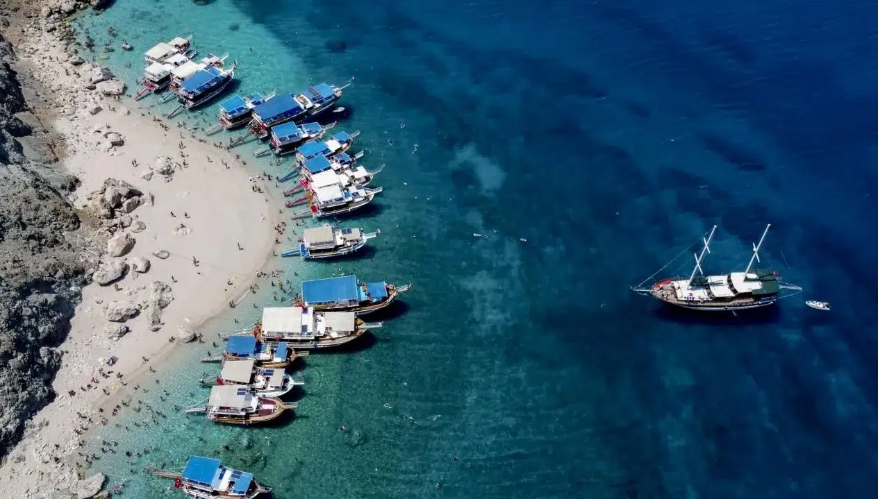 Biri 50, diğeri 120 metre bembeyaz kumulu ve turkuaz renkli suyuyla iki plaja sahip adaya, günde 200’e yakın tekne tur düzenliyor.