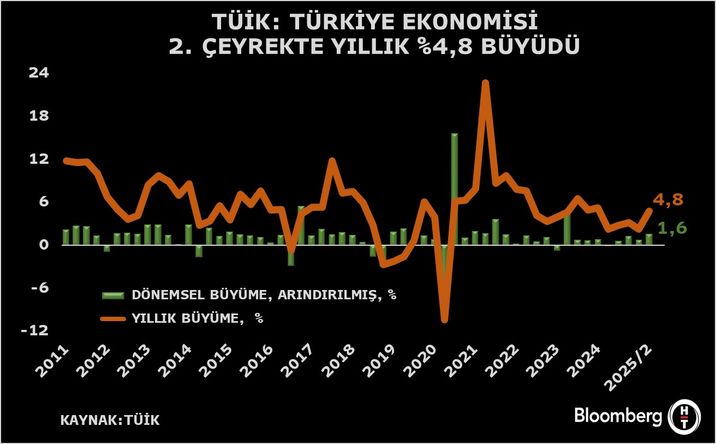 Türkiye ekonomisi yılın ikinci çeyreğinde bir önceki yılın aynı dönemine göre yüzde 4,8 büyüme kaydetti.